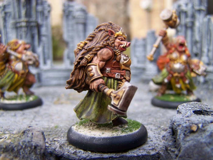 Determined, steadfast, and loyal, the farrow Valkyries make up the honor guard of the independent farrow warlock Helga the Conqueror. With hammer and cannon they beat back the Conqueror’s enemies, and with their shields and flesh they protect her from harm. When it serves Helga’s purposes, she has also been known to loan these prized warriors to her allies.