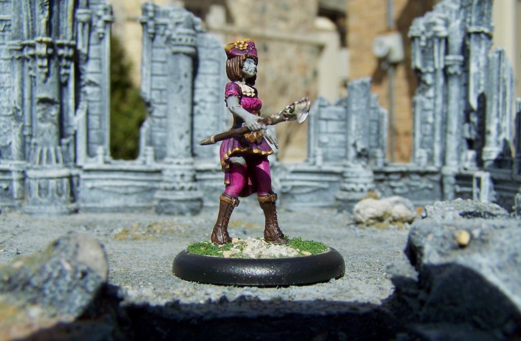 Once a Llaelese noble turned to the vile arts of necromancy, the Thamarite called Raggedy Mandy has been drawn to the battlefields of western Immoren by the palpable odor of death. As she picks among the dead for his unnatural purposes, her profane magic lets her kill with a glance and animate his victims to serve her.